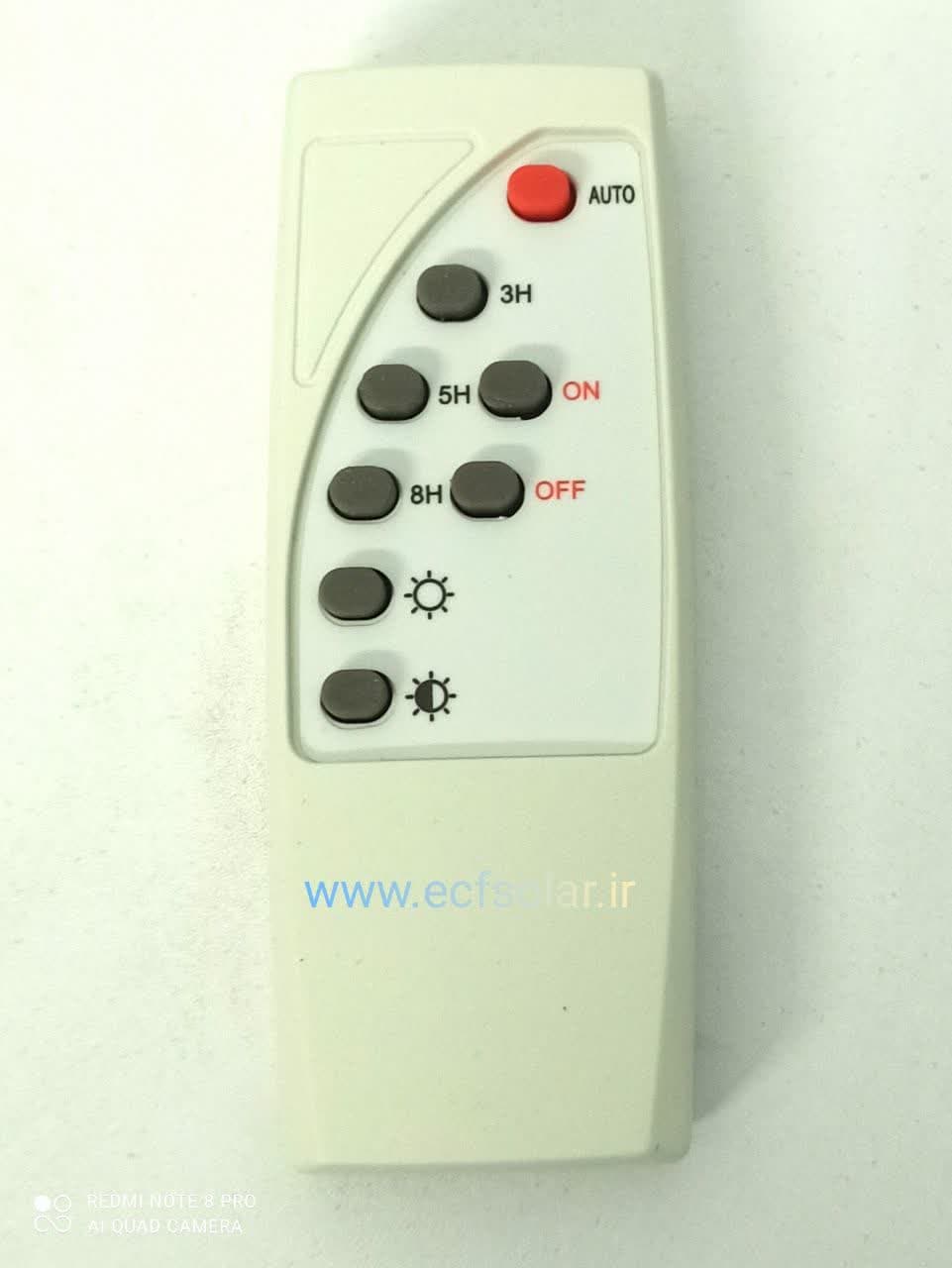 ریموت کنترل برای خاموش / روشن کردن چراغ تا برد ۱۵ متری همچنین تنظیم تعداد ساعات روشنایی و تنظیم شدت روشنایی
